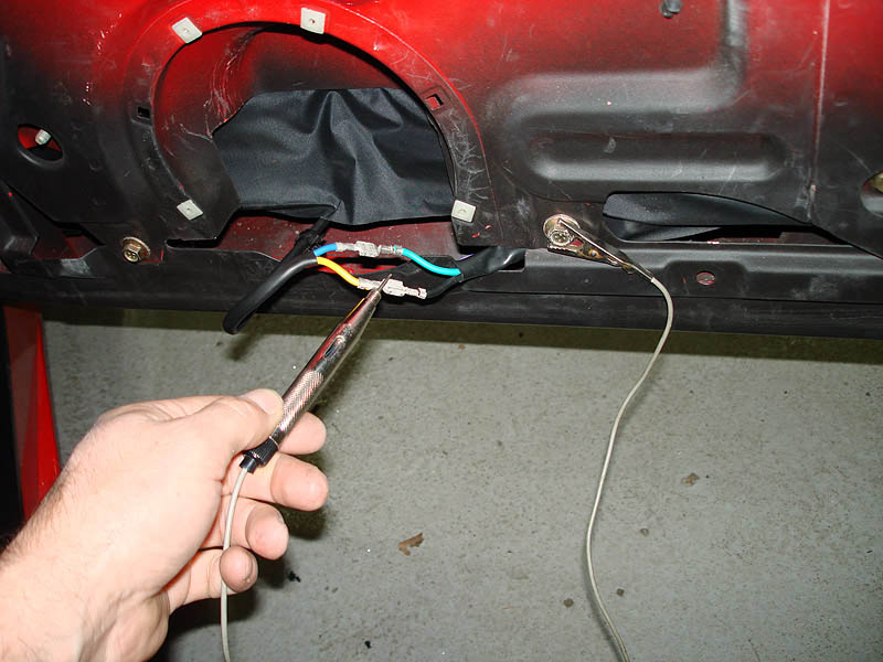 the bare connections. do not disconnect anything, leave the windows circuit